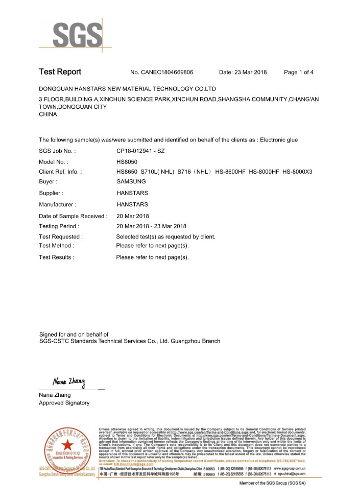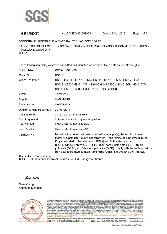 漢思委托第三方機構對樣品進行客戶需求的所有有害成分測試;