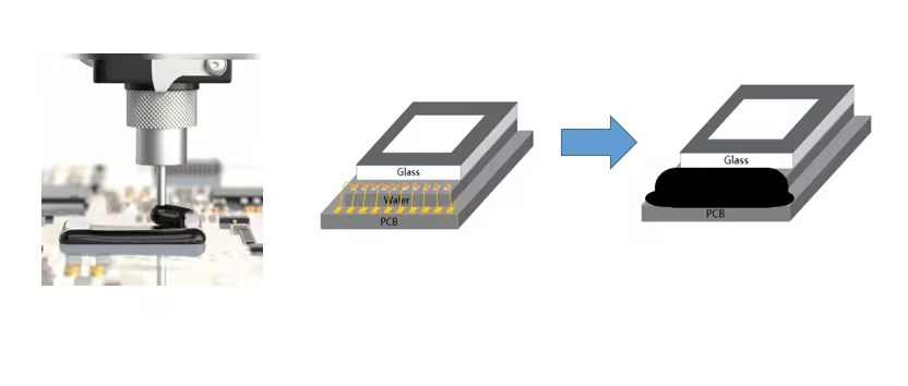 UV固化膠粘劑:特別是在柔性OLED封裝中,UV固化膠因其快速固化、低熱影響以及形成的封裝層具有高透明度和強粘接力而被廣泛研究和應用。這類膠粘劑可以精確控制固化過程,非常適合精密的金線封裝,能有效防止環境因素對金線及周邊電路的侵蝕。