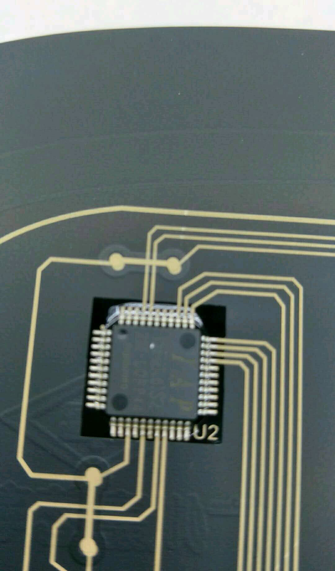 客戶現(xiàn)在開發(fā)一款薄膜開關(guān),需要在PET膜上面用銀漿印刷電路,然后用銀膠固定IC.(銀漿和銀膠固化溫度130℃ 30分鐘 )。固定后在折彎時銀膠的固定效果不是很理想,輕輕一折就會松動。達(dá)不到客戶想要的結(jié)果??蛻粲袊L試用UV. 硅膠對IC四周的銀腳進(jìn)行包封加固,效果也不是很好,反而出現(xiàn)內(nèi)縮變形??蛻粽J(rèn)為這種變形可能與膠水不能進(jìn)入IC底部有關(guān)(IC底部與PET膜之間有0.35mm的縫隙)。因此想找一款底部填充膠來填充包封加固IC,進(jìn)行芯片保護(hù)。需要公司討論后給客戶提供合適的樣品測試。
